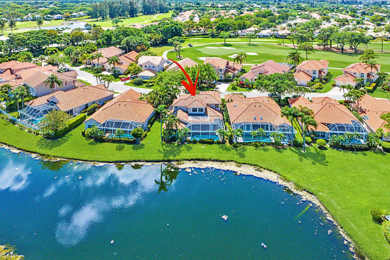 Location Location Location! Fabulous long lake views in the desirable Eagleton Cove neighborhood! There are 4 Bedrooms 3 full bathrooms and a large, spacious and light filled loft upstairs with dramatic water views. This is the largest model in The Cove and has a spacious motor court with extra parking plus a 2 car AC garage. 3 high transit windows are impact glass and Accordion Shutters on windows. The home features two large storage closets and newer 2 zoned HVAC systems. The home is situated on a prime waterfront lot with covered patio and screened charming pool. Easy to show!